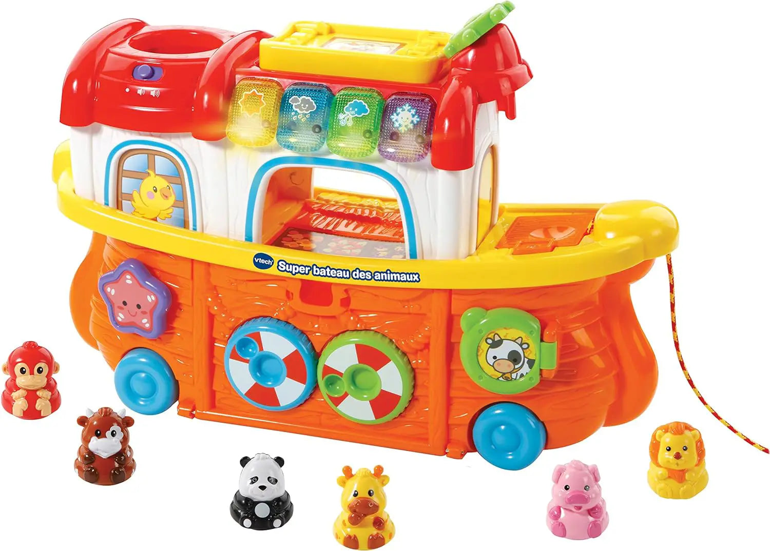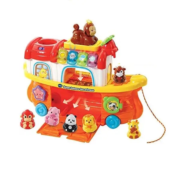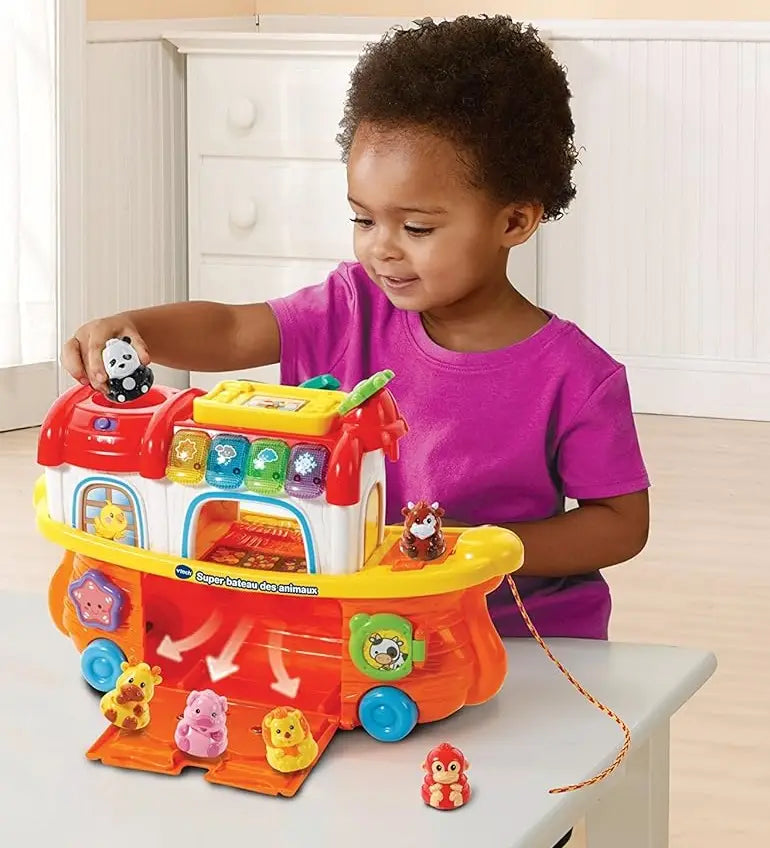 - Incluye una colección de seis animalitos que, cuando se deslizan por el hueco del barco, los cuenta uno a uno y activa distintas interacciones.