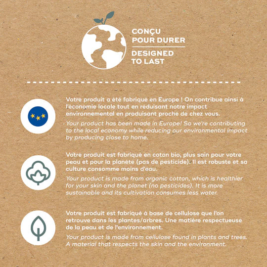 Fabricado íntegramente en Europa bajo estrictos controles de calidad, cuenta con la certificación Oeko-tex, garantizando que está libre de sustancias nocivas. Además, pensando en la higiene diaria, es lavable a máquina a 30°C.