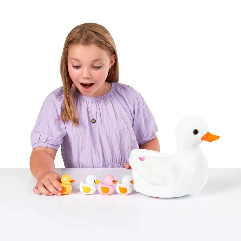 Cuando los patitos salen del cascarón, se pueden colocar en la cola de Mamá Pato, y ver cómo la siguen mientras ella parpadea y camina como un pato de verdad. Esta función incentiva el juego imaginativo, la coordinación y la creatividad, convirtiendo al juguete en un compañero perfecto para aventuras diarias.